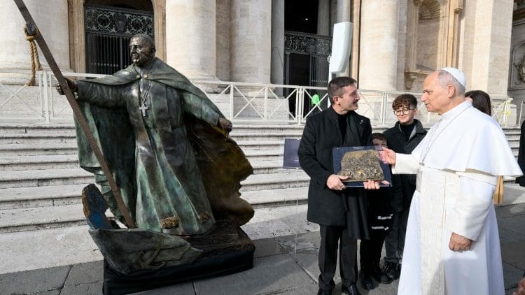 Al final de la audiencia jubilar, el escultor Domenico Sepe entregó al Pontífice una escultura de bronce que representa al Papa Francisco. Una artista francesa entregó al Obispo de Roma “La cruz de la esperanza” para dar testimonio de la milenaria historia de la evangelización de la Iglesia.